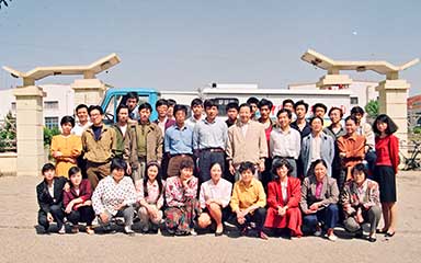 威海特種電源設(shè)備廠成立,并從電冰柜廠分離出來,以獨立法人資格對外自主經(jīng)營,自負盈虧,租借廠房500平方米,圖為創(chuàng)業(yè)初期的28名員工。