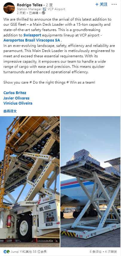 近期,由于威海廣泰集裝貨物裝載機在海外市場的出色作業(yè)表現(xiàn),全球領(lǐng)先的地服公司Swissport的一位相關(guān)代表在領(lǐng)英發(fā)文為廣泰產(chǎn)品點贊!我們很高興地宣布我們GSE車隊的最新成員的到來——一臺承載重量為15噸、具有最先進(jìn)安全功能的集裝貨物裝載機。這是Swissport在坎皮納斯國際機場的…