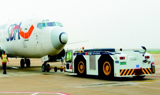 該類設(shè)備是牽引和頂推飛機(jī)離開機(jī)場(chǎng)停機(jī)廊橋的地面保障設(shè)備,同時(shí)還可因飛機(jī)故障及維護(hù)需要,用于救援、牽引和移動(dòng)飛機(jī)至維修機(jī)庫。該設(shè)備主要由駕駛室、車架總成、動(dòng)力傳動(dòng)系統(tǒng)、蓋板總成、液壓系統(tǒng)和電氣系統(tǒng)組成。