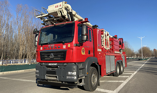 舉高噴射消防車裝備有水泵、泡沫一水兩用炮和泡沫液罐,滅火能力強(qiáng),作業(yè)范圍大,操作方便,作業(yè)安全保護(hù)裝置齊全,行駛機(jī)動(dòng)靈活。
