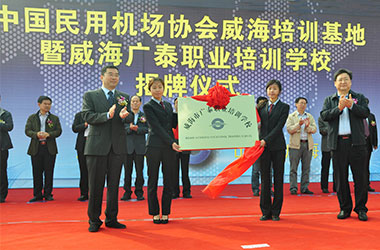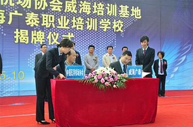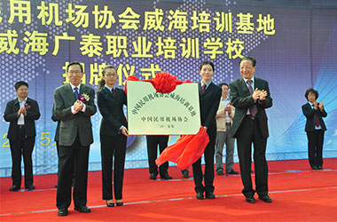2015年10月,威海廣泰與中國民用機場協(xié)會聯(lián)合在威海廣泰職業(yè)培訓(xùn)學校成立“中國民用機場協(xié)會威海培訓(xùn)基地”,整合優(yōu)勢資源,互利共贏,共同打造空港地面設(shè)備從業(yè)人員職業(yè)化培訓(xùn)平臺,進一步拓寬了師資渠道和培訓(xùn)力量,提高培訓(xùn)質(zhì)量和實效性,對推進我國機場從業(yè)人員資質(zhì)能力培訓(xùn)的系統(tǒng)化、標準化,具有重要意義。