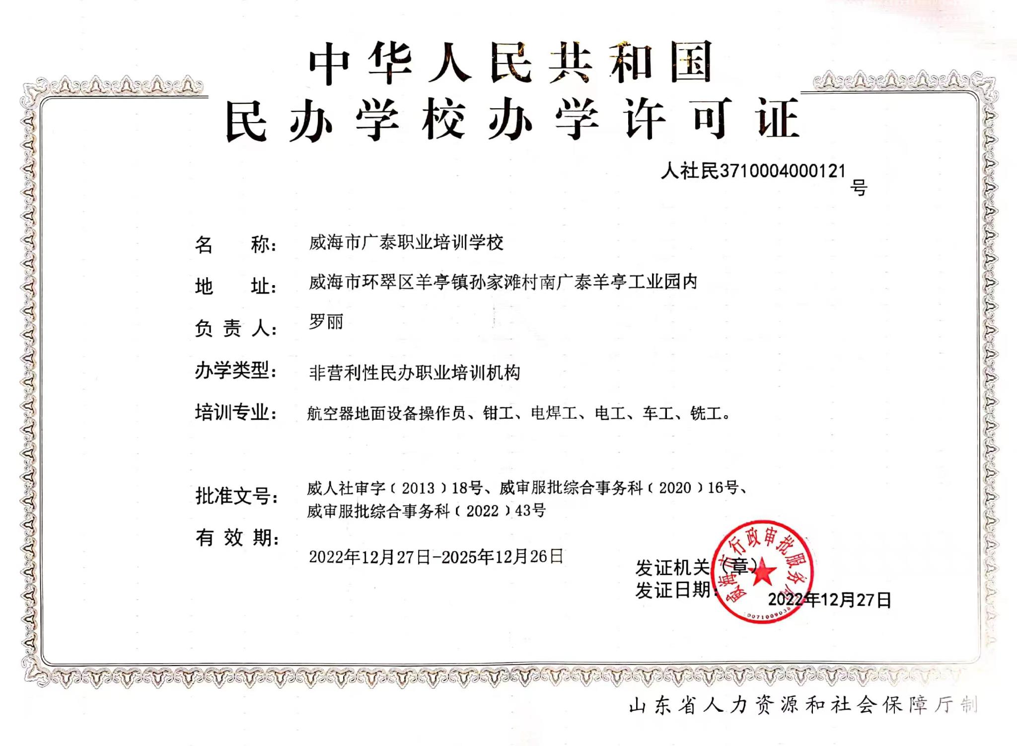 威海廣泰職業(yè)培訓(xùn)學校成立于2013年,由威海廣泰空港設(shè)備股份有限公司全資設(shè)立。 學校位于威海市環(huán)翠區(qū)羊亭鎮(zhèn)惠河路93號,是經(jīng)威海市人力資源和社會保障局批準成立的職業(yè)培訓(xùn)機構(gòu),具有民航特種車輛操作工、民航特種車輛機械維修工、民航特種車輛電氣維修工、鉗工、電工、焊工、車工、銑工、涂裝工、計算機操作員等工種的初、中、高級職業(yè)技能培訓(xùn)資質(zhì)。學校致力于成為民航業(yè)內(nèi)專業(yè)的技能提升培訓(xùn)服務(wù)機構(gòu),堅持“教練結(jié)合、寓教于練”的培訓(xùn)理念,為學員提供優(yōu)質(zhì)的培訓(xùn)服務(wù)。